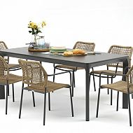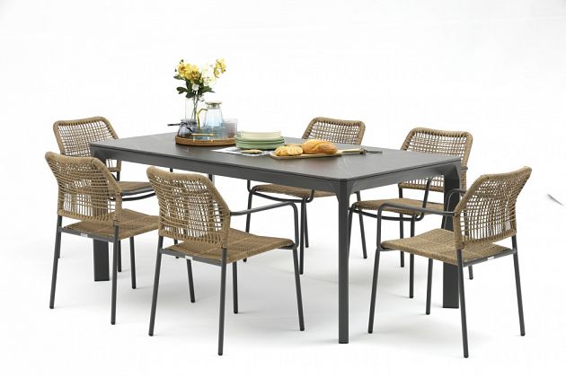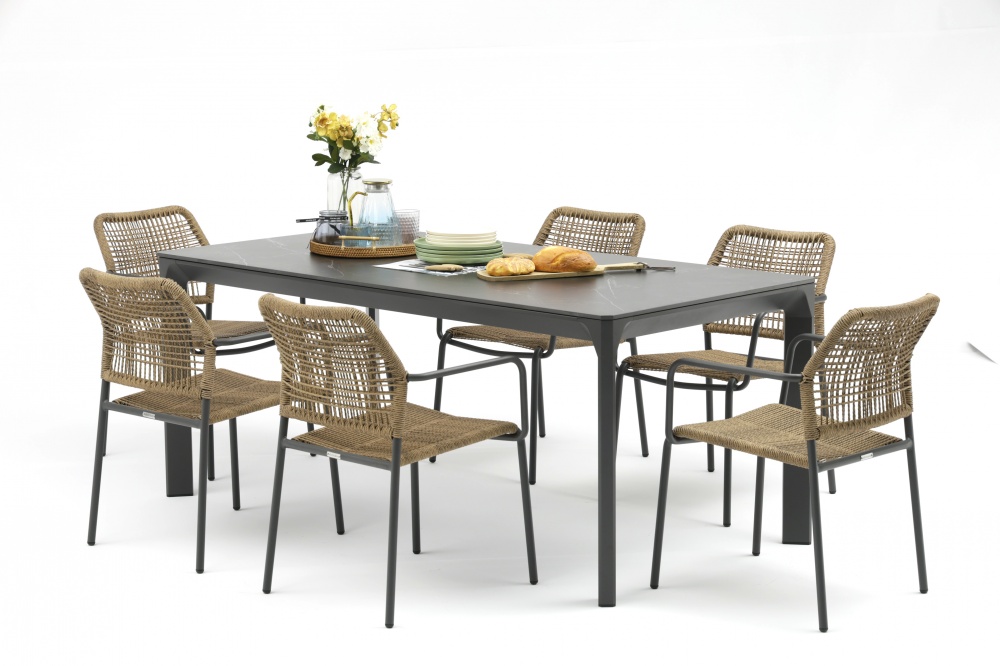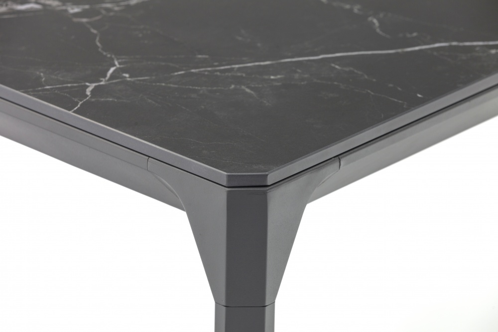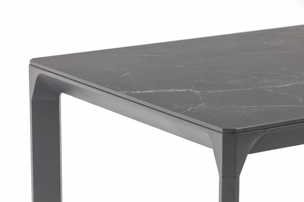 Jedilna miza CARVES je izjemnega videza zaradi posebne keramične plošče v imitaciji kamna.