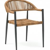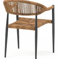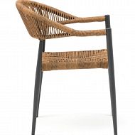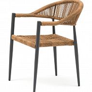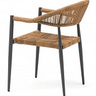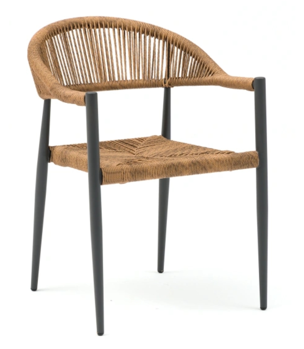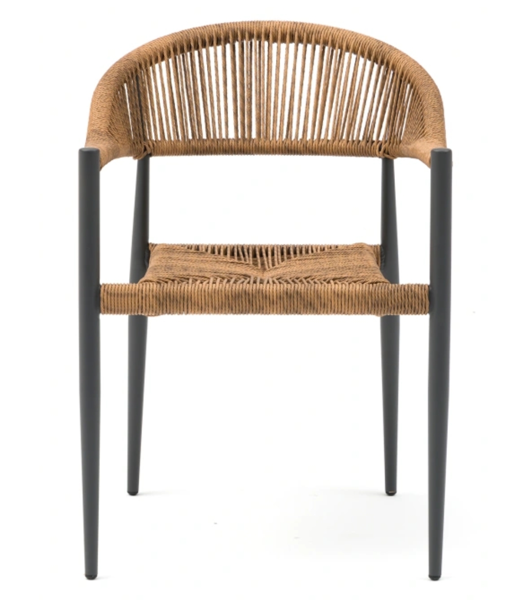 Stol NANDO NATUR antracit/rjav združuje elegantno zasnovo in funkcionalnost. Njegovo ogrodje je izdelano iz prašno barvanih aluminijastih cevi, kar zagotavlja odpornost na vremenske vplive, medtem ko je sedišče in naslon prepleten z visokokakovostnim PE umetnim rattanom premera 5 mm za naraven in sodoben videz. Stol je nakladalen, kar omogoča enostavno shranjevanje.