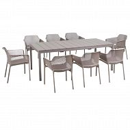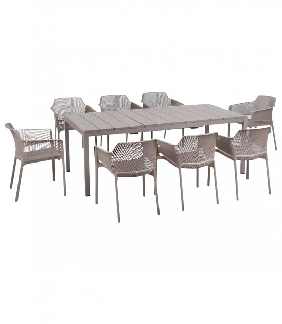 Vrtni stol NET je izdelan polipropilena, dodatno ojačan z močnimi steklenimi vlakni. Materiali so UV odporni. Stoli so nakladalni.