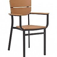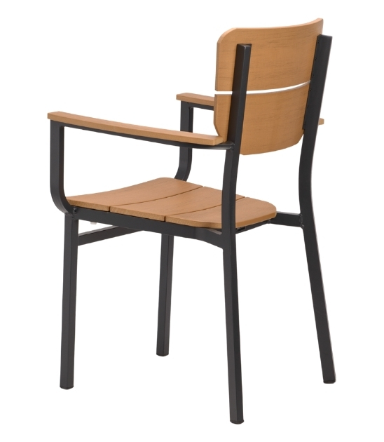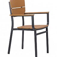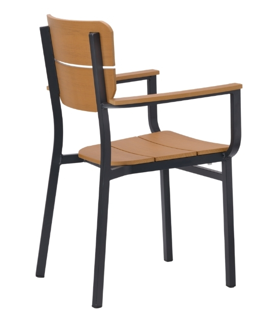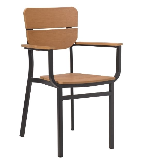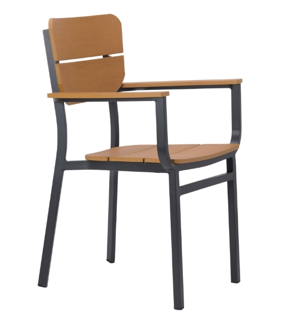 Stol OSLO R PLUS predstavlja popolno ravnovesje med sodobnim videzom in funkcionalnostjo. Z zasnovo, ki združuje aluminijasto konstrukcijo in umetni les, je ta stol idealna izbira za terase, vrtove, gostinske lokale ali druge zunanje prostore.