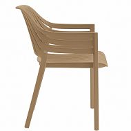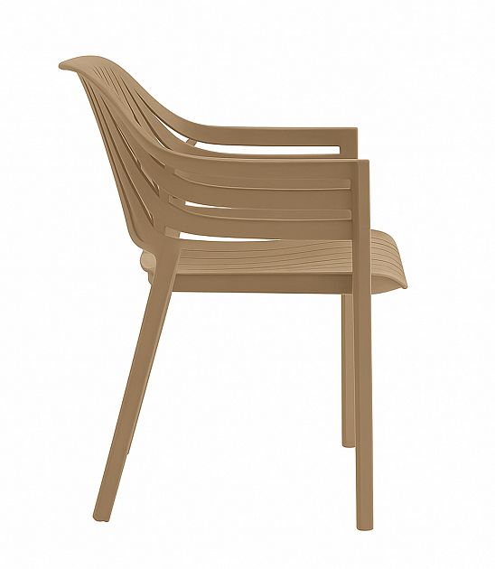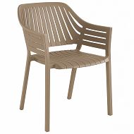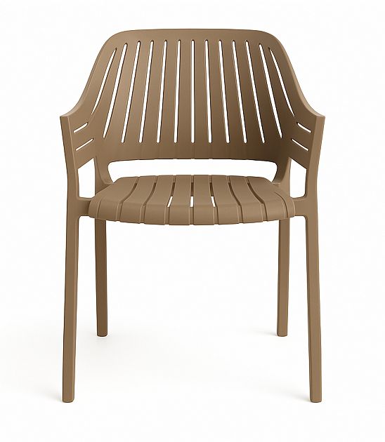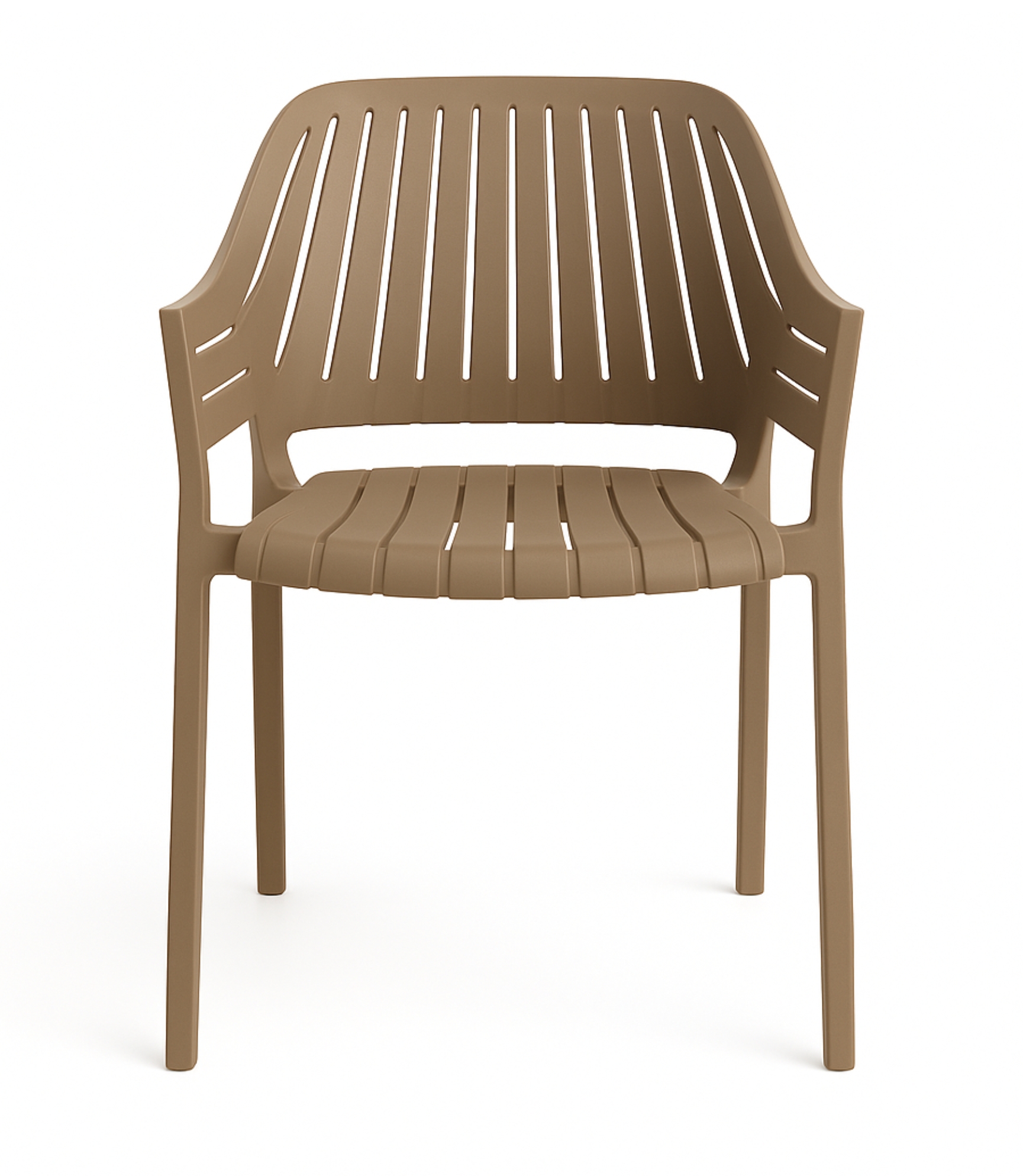 Stol RAY TAUPE navduši z lahkotno, sodobno obliko in udobnim sedežem z integriranimi rokonasloni. Vertikalne reže v naslonu in sedežu dajo stolu zračen videz, nevtralni odtenek taupe pa se prefinjeno ujema z različnimi interierji.