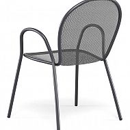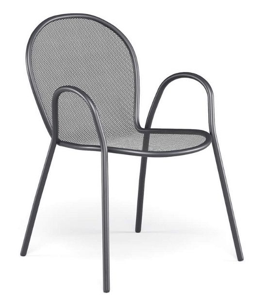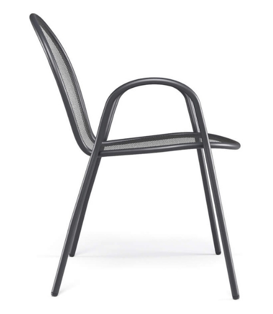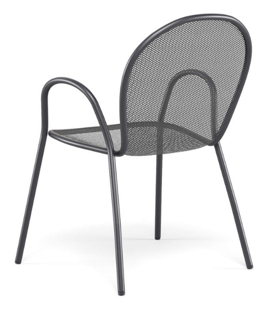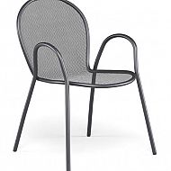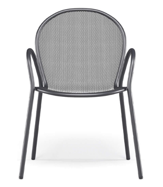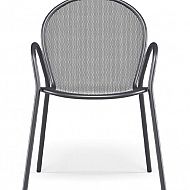 Vrtni stol RONDA R je klasičen kos zunanjega pohištva z brezčasnim dizajnom, ki združuje funkcionalnost, trpežnost in estetsko preprostost. Zahvaljujoč kovinski mrežasti strukturi in zaobljenemu naslonjalu nudi udobje in zračnost, hkrati pa se popolnoma vključi v različna okolja – od zasebnih vrtov do profesionalnih teras in kavarn.
