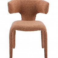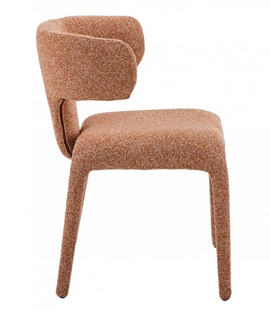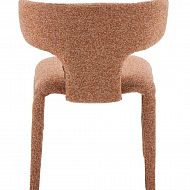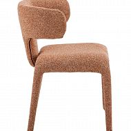 Stol Keti Terracotta izstopa s sodobnim videzom in udobnim sedenjem. Sedišče in naslon sta oblazinjena v mehko rdeče-bakreno tkanino, ki prostoru doda toplino in značaj. Noge, oblečene v blago, ustvarjajo prefinjen, usklajen videz. Kompaktne dimenzije stola ga naredijo idealnega za jedilnice, dnevne sobe ali sodobne pisarne.