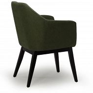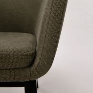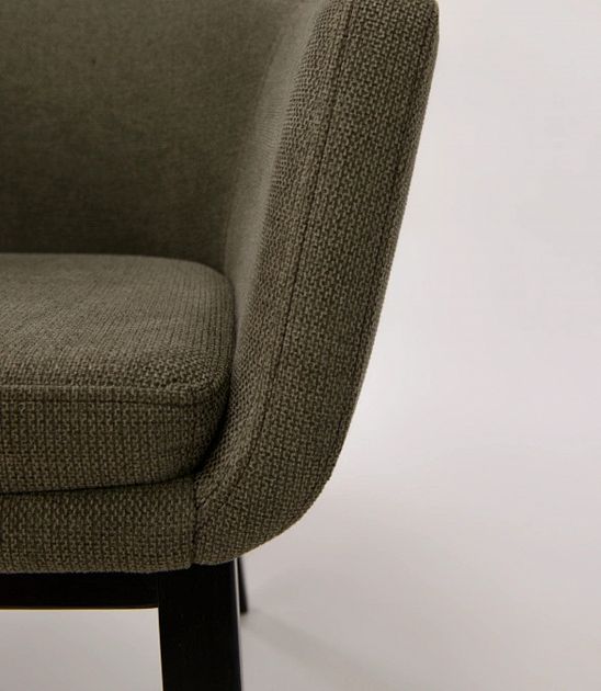Sedišče je oblečeno v kakovostno mikrotkanino v videzu žameta, ki je prijetna na dotik, hkrati pa odporna na dlake in enostavna za čiščenje – zato je stol primeren tudi za domove s hišnimi ljubljenčki (pet-friendly). Trdno ogrodje iz masivnega lesa s črnimi nogami poskrbi za stabilnost, vizualni kontrast in dolgo življenjsko dobo.