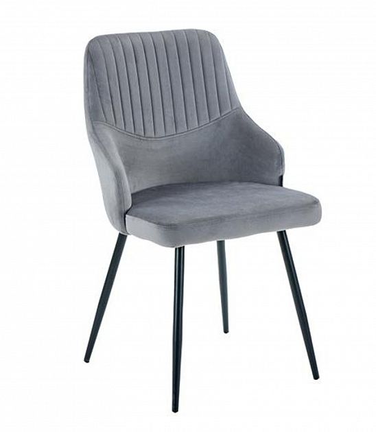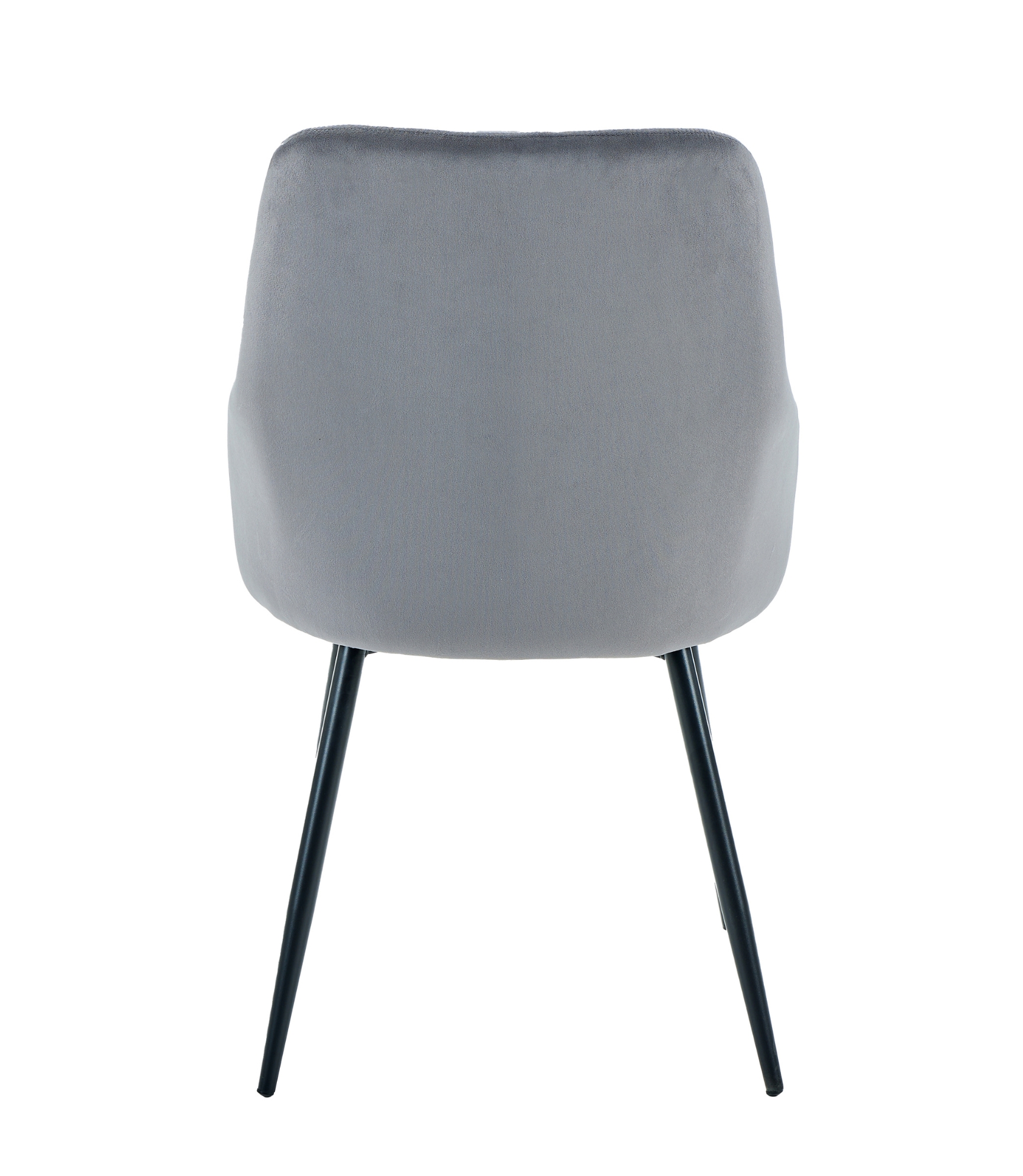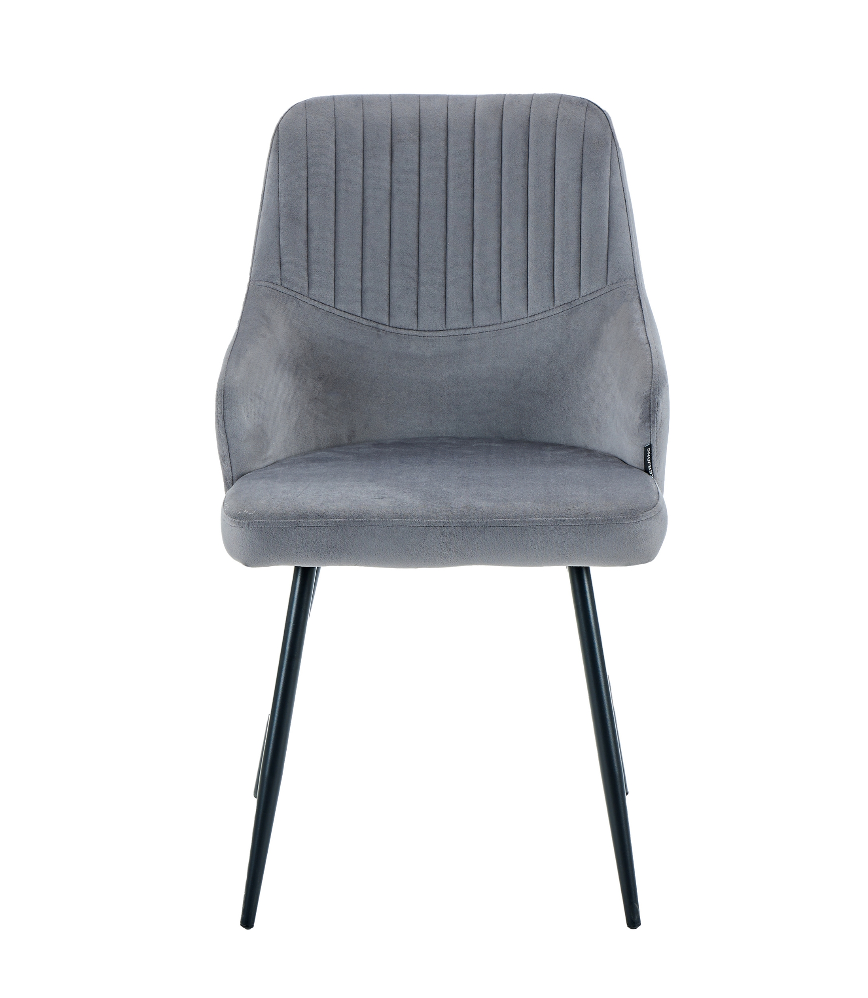 Jedilniški stol Zuri Grey v elegantni sivi barvi, z mehkobo žameta in lahkotno kovinsko podnožno. ZURI Grey združuje udobje, trpežnost in brezčasen videz – za jedilnice, domače pisarne ali čakalnice.